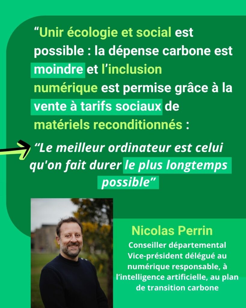 « Le meilleur ordinateur est celui qu’on fait durer le plus longtemps possible » Nicolas Perrin, conseiller départemental, vice-président délégué au numérique responsable, à l’intelligence artificielle et au plan de transition carbone.