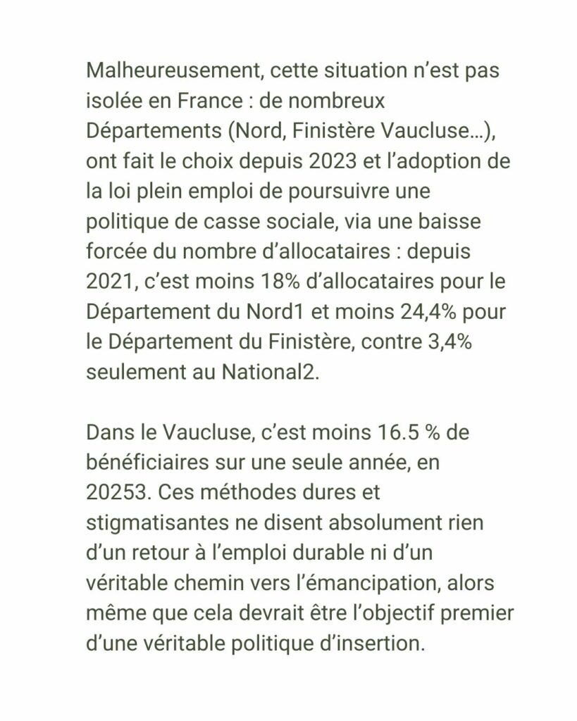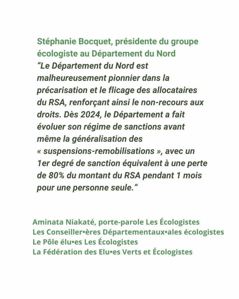 Réforme du RSA : Les Écologistes dénoncent le durcissement de la politique RSA exercée par certains Départements